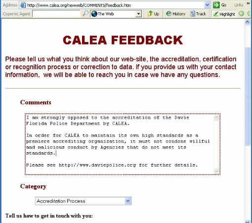 The Davie Police Department now seeks to be accredited by CALEA, but Police Chief John George needs to personally review CALEA Chapter 82, especially 82.2.2 - the Chapter on RECORDS.